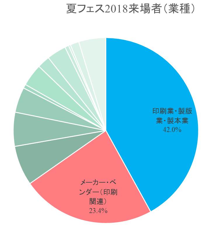 印刷関連業以外の業種の来場者割合が前回を8ポイント近く上回った。また役職者層の来場者比率が約半数であった。